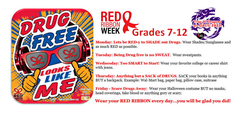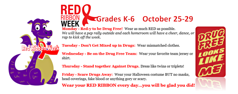 Click Red Ribbon Week logo to see our elementary and high school dress-up days!